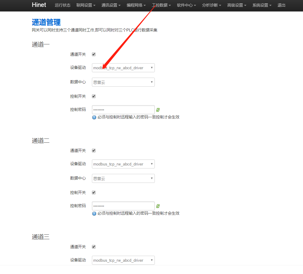 1. 點表協(xié)議與網(wǎng)關(guān)后臺的驅(qū)動協(xié)議不一致,以思普云平臺采集數(shù)據(jù)為例,思普云平臺的產(chǎn)品管理處查看產(chǎn)品的協(xié)議名稱。進網(wǎng)關(guān)后臺“工控數(shù)據(jù) - 通道管理”處查看設(shè)備驅(qū)動。點表協(xié)議必須與網(wǎng)關(guān)后臺驅(qū)動協(xié)議一致。
