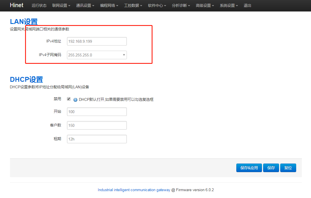 1.網(wǎng)關(guān)LAN口IP與PLC的IP是否在同一網(wǎng)段,進(jìn)網(wǎng)關(guān)后臺,點(diǎn)擊“通訊設(shè)置 - LAN設(shè)置”,修改網(wǎng)關(guān)LAN口IP,使其與PLC的IP處于同網(wǎng)段。