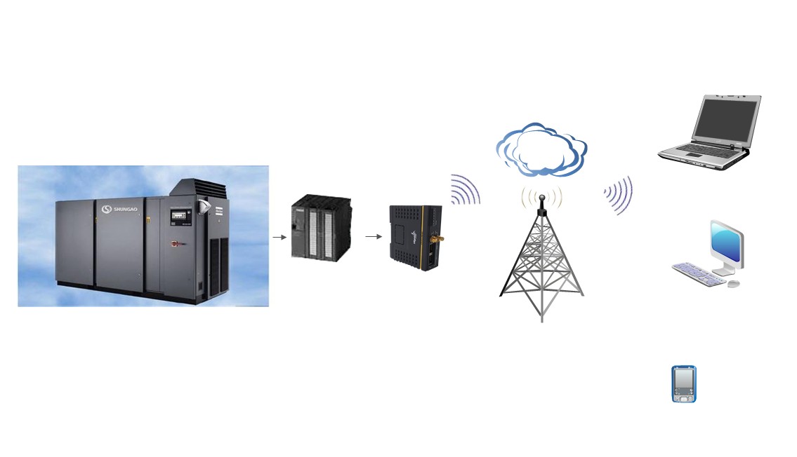 本方案采用3G、4G、5G、WIFI等無線通訊方式,運用華辰智通的HDRSPLC遠程通訊網關實現管理員及售后人員對空壓機等PLC設備狀態的遠程監測、控制及遠程售后運維。