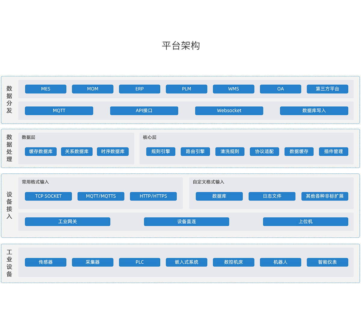 “源數采”是華辰智通自主研發的工業設備數據采集平臺,集數據采集、數據分發以及采集/分發過程監控為一體的私有化IoT數采平臺。致力于打破工廠信息孤島,為工廠各類信息化系統提供持續、穩定且安全的數據來源,為工業企業的智能化轉型提供助力。